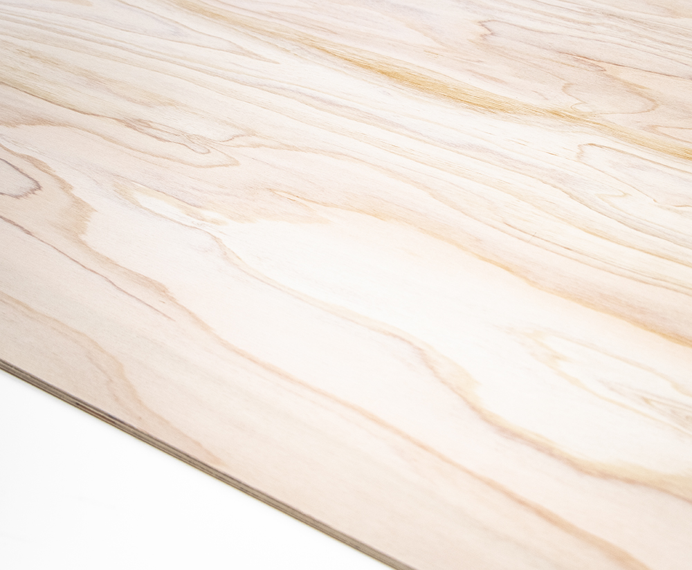 表と裏の両面にひのきの単板を貼った、インテリア内装用ひのき合板。 特に表面には節(ふし)があまりない。芯材は国産針葉樹。サンダー仕上。無塗装品。 特類 Fスター4 主用途=壁天井の仕上、建具扉